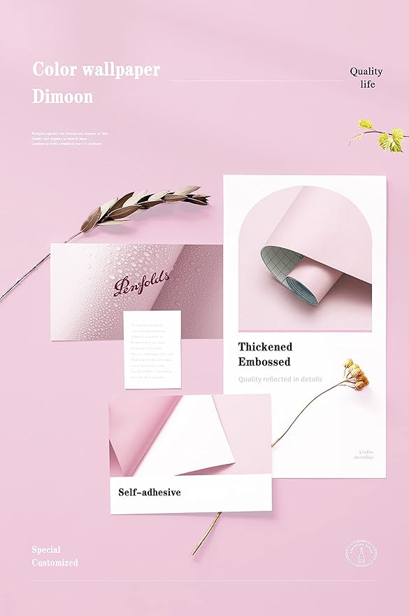 Dimoon 110''x17.7'' Pink Peel and Stick Wallpaper Contact Paper Modern Self Adhesive Wall Paper Removable Renter Friendly Textured Solid Color Shelf Cabinet Vinyl Roll (110''x17.7'',Light Pink)