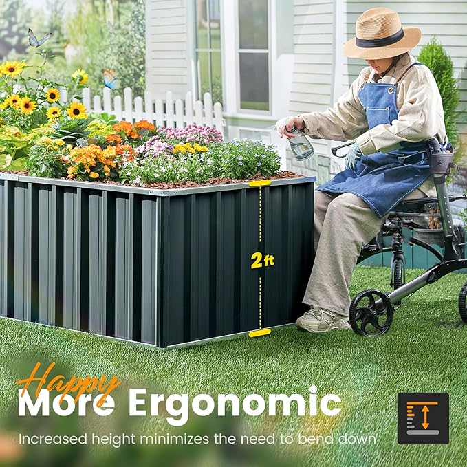 - 2 YEARS service: Upgraded multilayer galvanized paint efficiently prevents rust and maintains beauty; galvanized steel planter box provides lasting use and no discoloration. No painting inside, and no worries about the damage to plants. 2 YEARS service for the whole planter raised beds.