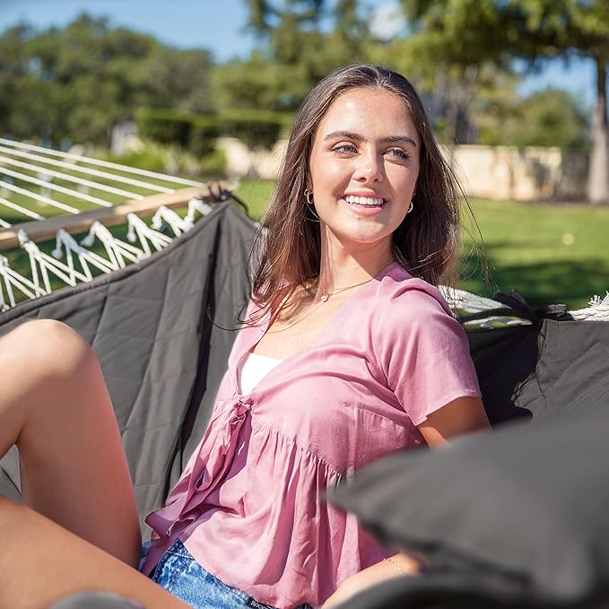 ANOW Outdoor Rope Hammock with Spreader Bars, Heavy Duty Hammock with Pad for Outdoors Indoors, 450 LBS Weight Capacity, Gray