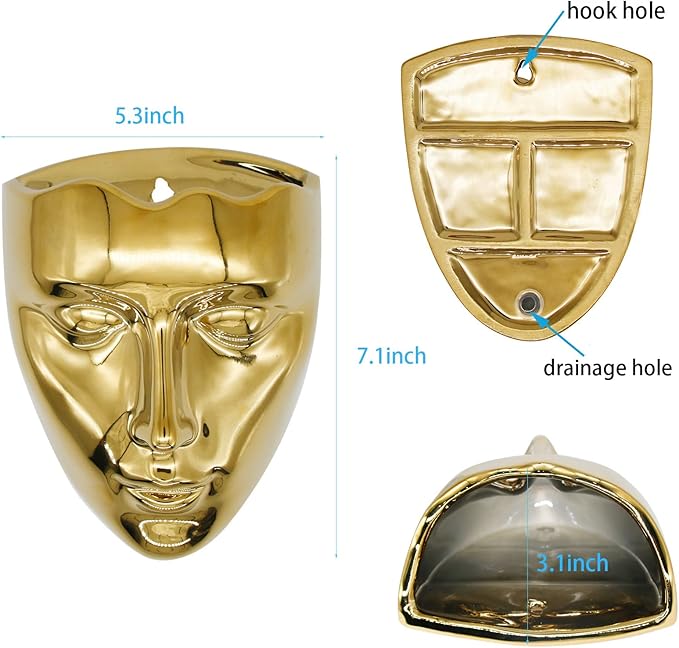 Face Vase,Ceramic Female Form Vase,Modern Sculpture Planter Pot,Human Face Dried Flower Shaped Vase,Wall Hanging Plant Pot for Home Decor Centerpieces, Office or Outdoor Hanging Decor Gold