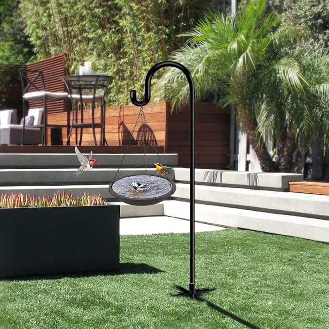 - INSTALLATION GUIDE: All heavy duty wrought iron plant pole hooks are equipped with installation instructions. Just make sure that every part is 100% tightened and they are ready to use, no extra tools or accessories needed. Warm tips: Do not directly hit the 5-prong base with hard objects, like hammer and we donโt recommend putting these hanging bird house stake into soft moist soil, which may cause the pole to tip over or bend down.