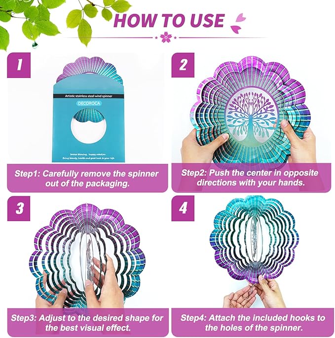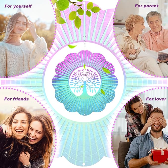 - 🌈 [EASY TO HANG AND STABLE] You just need to expand the garden wind spinner to a certain angle and hang it on the decoration with a hook. Our wind spinner will rotate with the wind, and even in strong winds, it can remain stable without deformation.