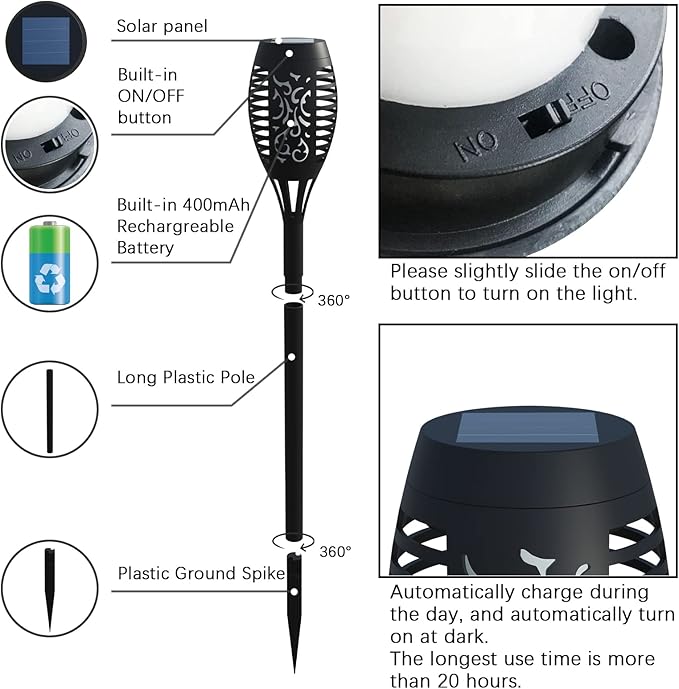 - 🔥【Quality Customer Service & Commitment】 AOUNQ halloween outdoor decorations have passed strict quality auditsand we are very confident in the quality of all products. And AOUNQ will provide one-year replacement service for any quality problems of solar flame torch lights outdoor. We will always support you and actively solve your problems within 12 hours.