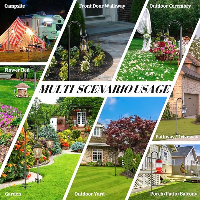 - All-Season Versatility for Every Outdoor Occasion:More than just for bird feeders! Use this garden hook to hang seasonal decorations like flower baskets in spring, solar lights in summer, Halloween lanterns in fall, or wreaths at Christmas. Ideal for Outdoor yard, garden, flower bed,front doors, patios, walkways, and even campsites