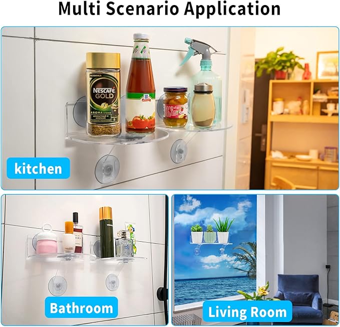 - EASY TO ASSEMBLE : After cleaning the surface with alcohol or a clean towel, the suction cup shelf can firmly adhere to glass, mirrors, and smooth tiles. It's a great suction cup shelf saving wall organizer