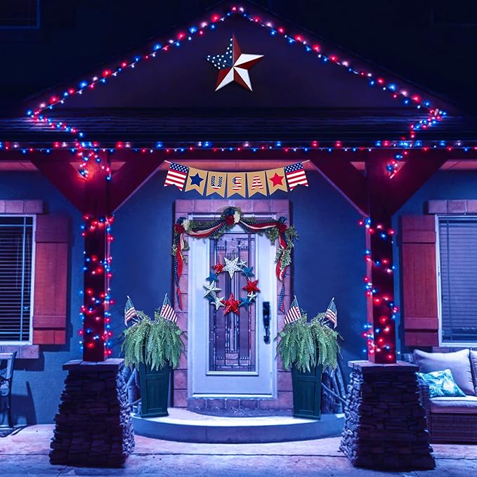 - 8 LIGHTING MODES FOR DIVERSE ATMOSPHERE: 4th of July is a day with many meanings, and our red white blue solar lights have exactly 8 lighting modes to create diverse atmosphere. For example, the flash mode can ignite the atmosphere of the festive party, and the slow mode is very suitable for remembering the martyrs. When it comes to lighting, you are definitely the best prepared in the neighborhood