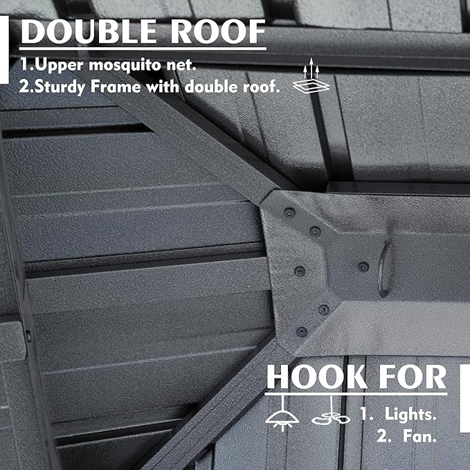 - ✅Two hooks have been specially crafted to accommodate fans or lights, enhancing the ambiance of your gazebo and making it a comfortable and inviting space.