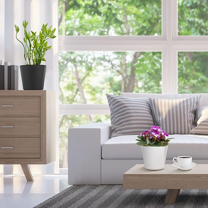 7 inch Plant Pots 6-Pack, Self Watering Flower Pots Indoor Outdoor, African Violet Pots Planters with Drainage Hole Saucer Reservoir, White