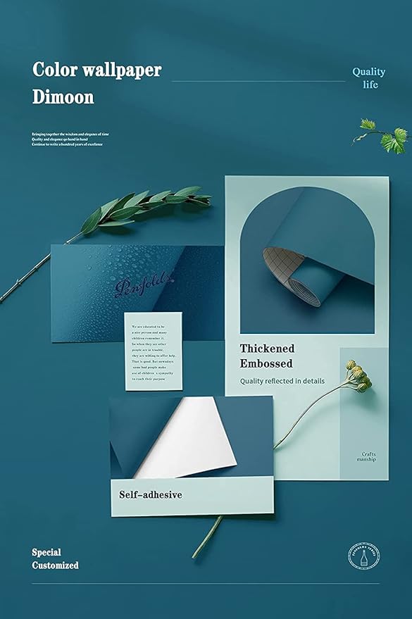 Dimoon 236''x17.7'' Blue Peel and Stick Wallpaper Contact Paper Modern Self Adhesive Wall Paper Removable Renter Friendly Textured Solid Color Shelf Cabinet Vinyl Roll (236''x17.7'',Dark Blue)