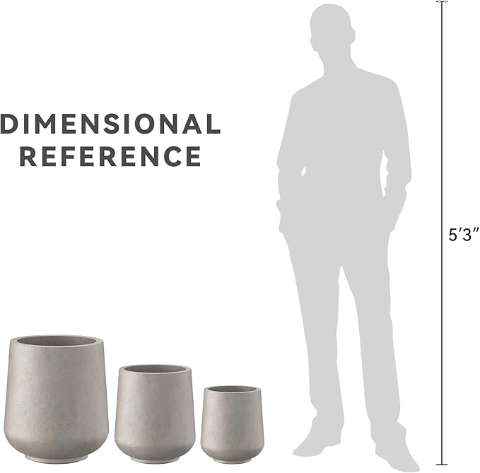 Kante 15.3"+11.6"+8.2" Dia Round Concrete Planter, Large Outdoor Indoor Planter Pots Containers with Drainage Holes and Rubber Plug for Home Garden Patio, Weathered Concrete