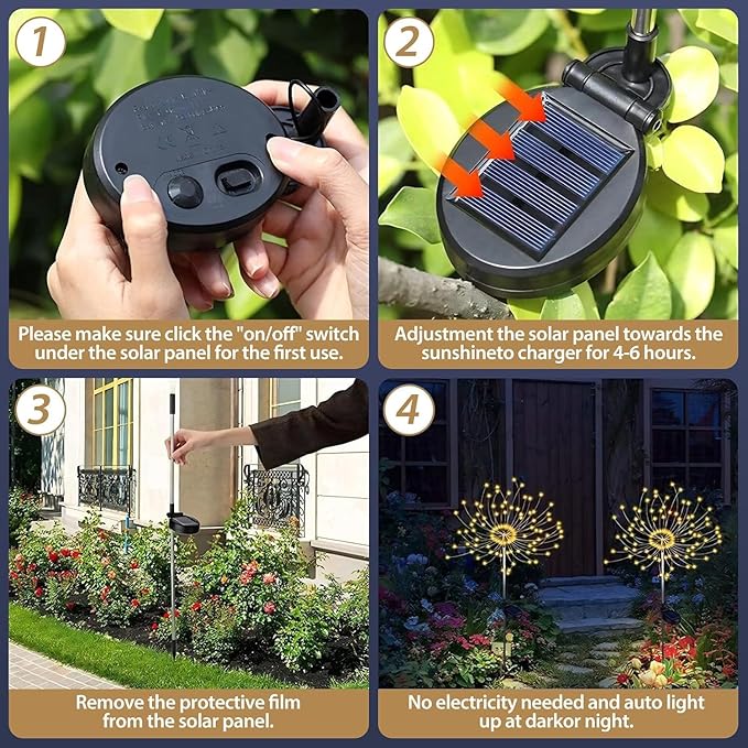 - Garden Decorative Lights:Solar fireworks lights use 150LED lights and 50 upgraded high-quality copper wires, which can be easily designed into your favorite shapes, such as heart-shaped, fan-shaped, fireworks, etc.Suitable for courtyards, flower beds, lawns, and camping sites