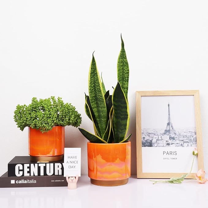 - Rainbow Pearlescent Glazed Design With Drain Holes: The rich color of this ceramic flower pot is covered a rainbowl look. Deep planting space promotes root growth to keep plants healthy. Large drain holes are good for draining, it is suitable for orchids, succulents, cacti, other flowers and green plants, perfect for home decoration.