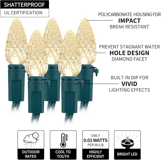 - Widely used: perfect outdoor Christmas C6 lights for Christmas trees, home, roof, garden, patio, balcony, porch, hallway, fence, shelf, commercial, bistro, pub, cafe, restaurant, shopping center, supermarket, New Year, birthday, gathering, disco ball party, dinner party, evening party, BBQ, ball, disco, bistro, pub, cafe, office