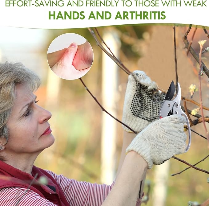- 💓GARDENING GIFTS AND BRAND GUARANTEE: This pair of scissors is a gift for gardening enthusiasts because of its easy-to-lock feature and comfortable handle design. Among horticulturists, it's a popular choice for Christmas gifts. we do not have to worry about the quality and after-sales problems of this brand protection pruning scissors.