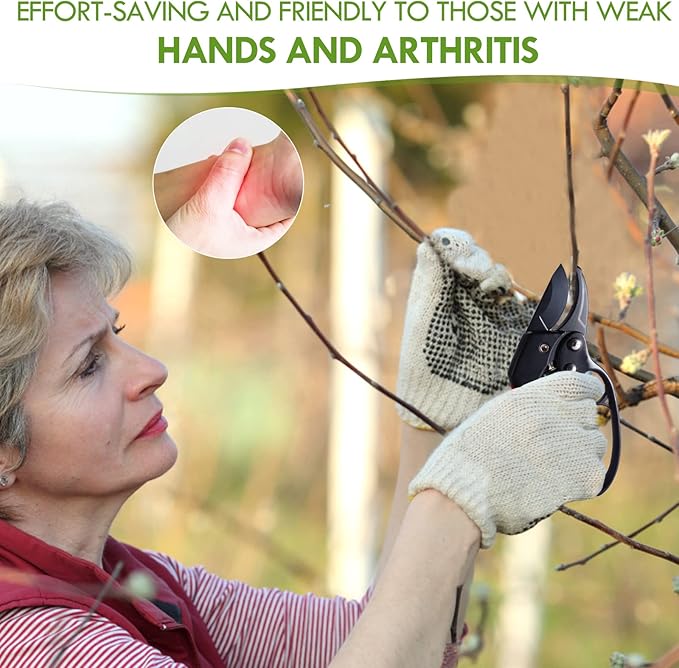 - 💞GARDENING GIFTS AND BRAND GUARANTEE: This pair of scissors is a gift for gardening enthusiasts because of its easy-to-lock feature and comfortable handle design. Among horticulturists, it's a popular choice for Christmas gifts. we do not have to worry about the quality and after-sales problems of this brand protection pruning scissors.