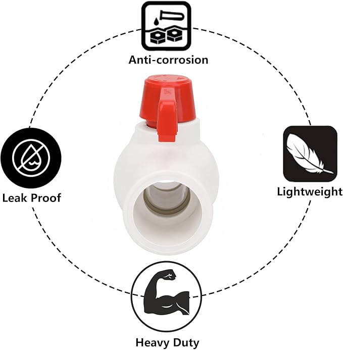 - 【Material】6pcs Heavy Duty 3/4 Inch PVC Ball Valve made of high-quality PVC, high-impact strength, resistant to frost and corrosion, long service life.
