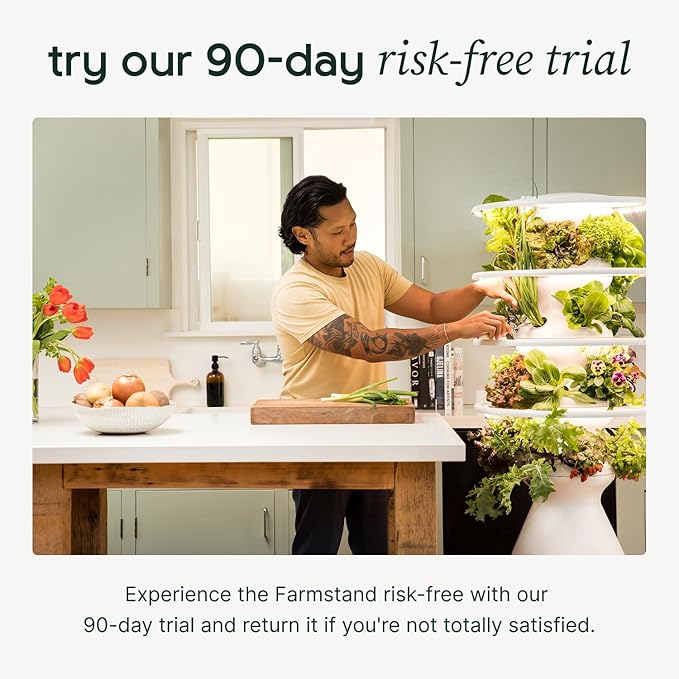 - 12 SEEDLING CREDITS: This starter kit includes a unique QR code on your Farmstand packing slip with instructions to redeem 12 seedlings from our website. Your special seedling bundle includes the best veggies, leafy greens, herbs, fruits and lettuce of the season. These pesticide free, non-GMO, pre-grown plants will have you harvesting 3 weeks early and help ensure your success. Seedlings not shippable to U.S. outlying territories.