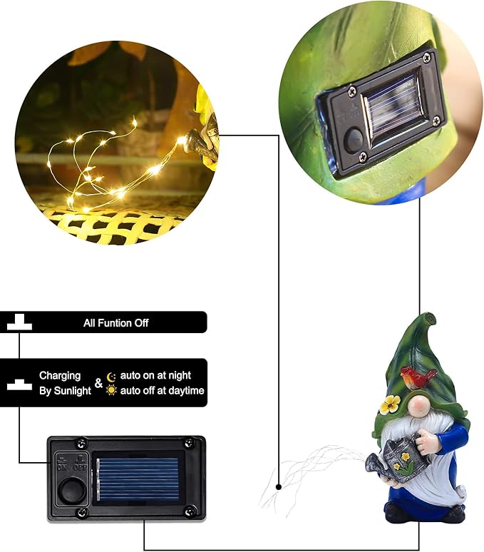 - 【Premium Quality】The garden statue is made of strong and durable weatherproof resin that is fade resistant. The product is equipped with an advanced solar chip that can be continuously lit for 16 hours.