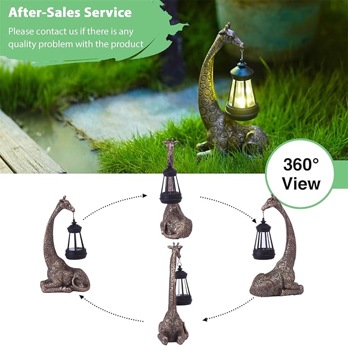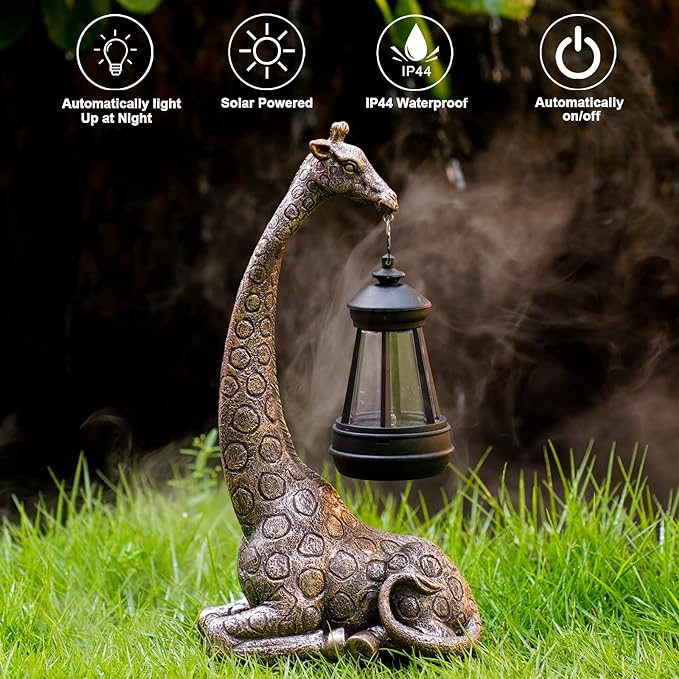 - 【Whimsical and Unique】: Add charm to your home and garden with this 11-inch giraffe statue that includes a solar-powered lantern for stunning visual appeal