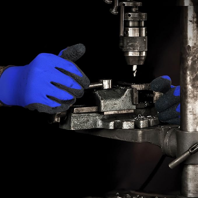 Evridwear Crinkle Latex Rubber Hand Coated Safety Work Gloves for Men Women General Multi Use Construction Warehouse Gardening Assembly Landscaping (X-Large,Blue- 12Pair)