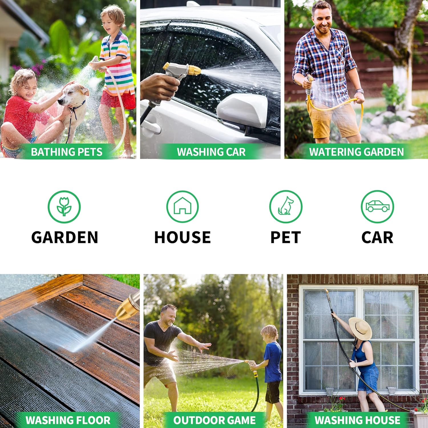 - Wide Application: The garden nozzle is suitable for a wide range of applications, including watering plants, washing cars, cleaning windows patio furniture, pet showering and more. The nozzle's high-pressure jet setting can easily clean dirt and grime, while the soft shower setting can gently water delicate flowers and plants in the garden bed. You can use it in your home, garden, or garage, making it a versatile tool that you'll reach for time and time again.