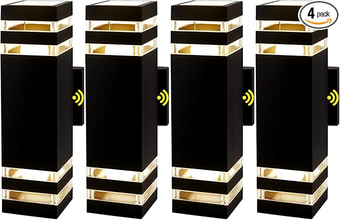 4 Pack LED Up Down Porch Wall Light, Modern Dusk to Dawn Outdoor Lighting, Aluminum IP65 Waterproof Exterior Light Fixture, Square Wall Light Sconce for Patio House