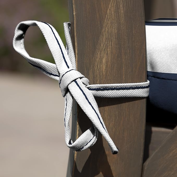 Arden Indoor/Outdoor Seat or Rocking Chair Cushion, 19 x 18, Water Repellent, Rain Proof, Fade Resistant Cushion for Rocking or Dining Chairs Sapphire Blue Cabana Stripe