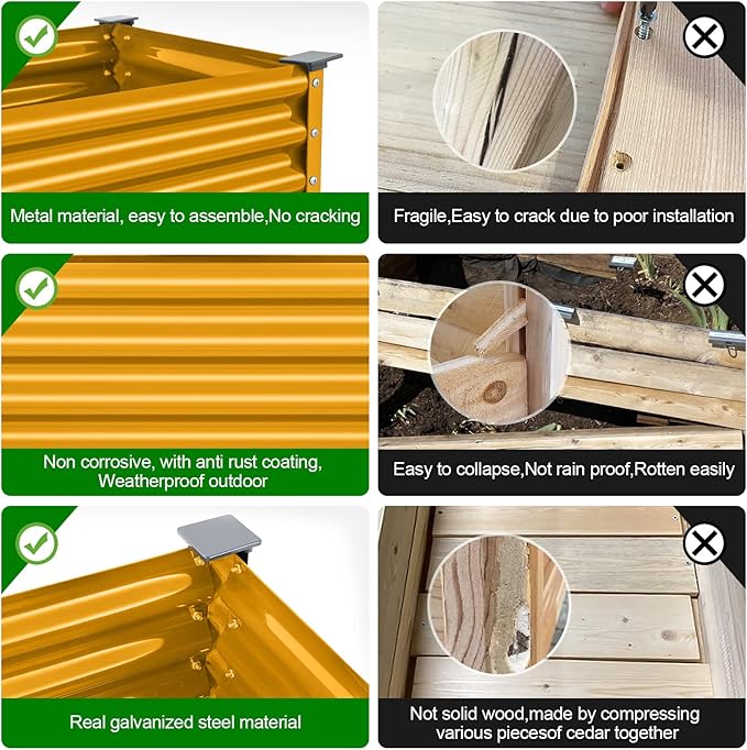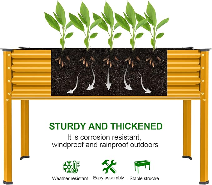 Land Guard Galvanized Raised Garden Bed with Legs, Galvanized Planter Raised Garden Boxes Outdoor, Oval Large Metal Raised Garden Beds for Vegetables(Yellow)………