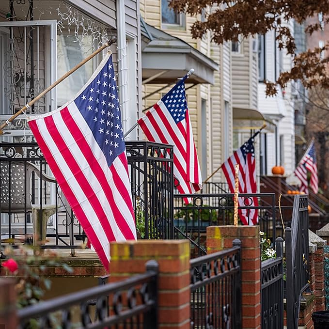 - Elaborate production: The USA flags 3x5 outdoor, luxurious embroidered stars, multi-row sewing on the bottom edge, brass grommets reinforcement , giving buyers peace of mind to use high quality indestructible American flag 3x5 outdoor.
