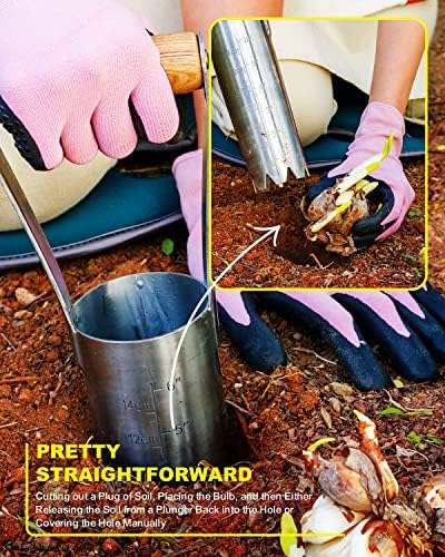 - MAKES PLANTING PROCESS SPEEDY AND EFFICIENT - Simply press the bulb planter into the soil to the required depth, twist to remove a core of soil, pop the bulb into the hole, and replace the core.Unlike most bulb planters, our unique design features a deeply serrated edge to easily penetrate packed ground, cleanly removing a cm diameter core. The planter is clearly marked with depth indicators up to 6 inches for precise planting.