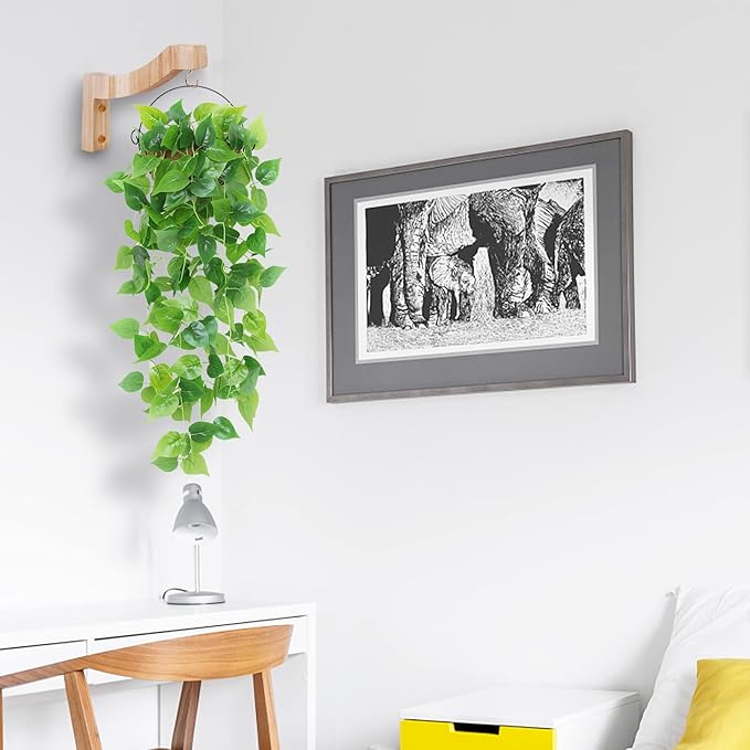 - Natural Raw Wood & Gold Metal Hook - Made of premium natural wood material and shiny gold metal hook, plant hanger indoor is of very solid construction, and not easy to break or deform, the plant hooks are sold in pairs and look fabulous for indoor and outdoor use. Wall planters for indoor plants are able to withstand very windy and rainy weather, you could stain or paint them if desired
