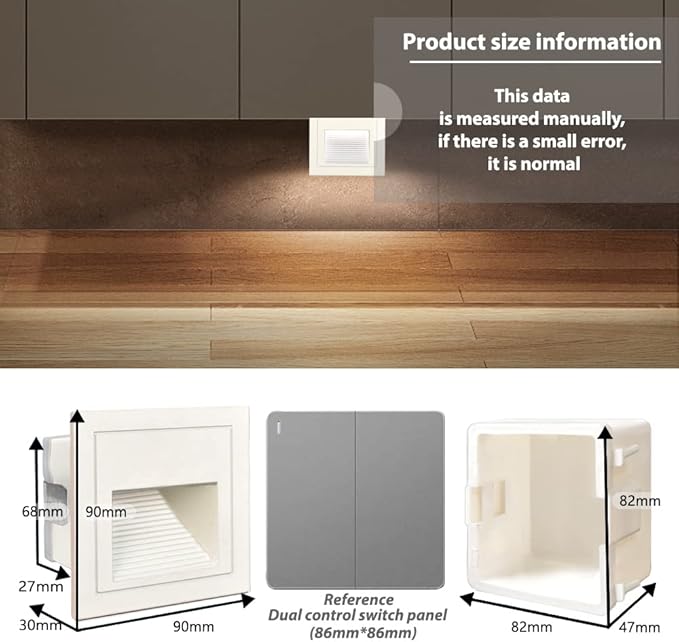 - Good quality: White shell, cool white 6000K, aluminum corner staircase light step light, IP65 waterproof, suitable for indoor and outdoor; IP65 can prevent the splashing water, but cannot be installed directly under water