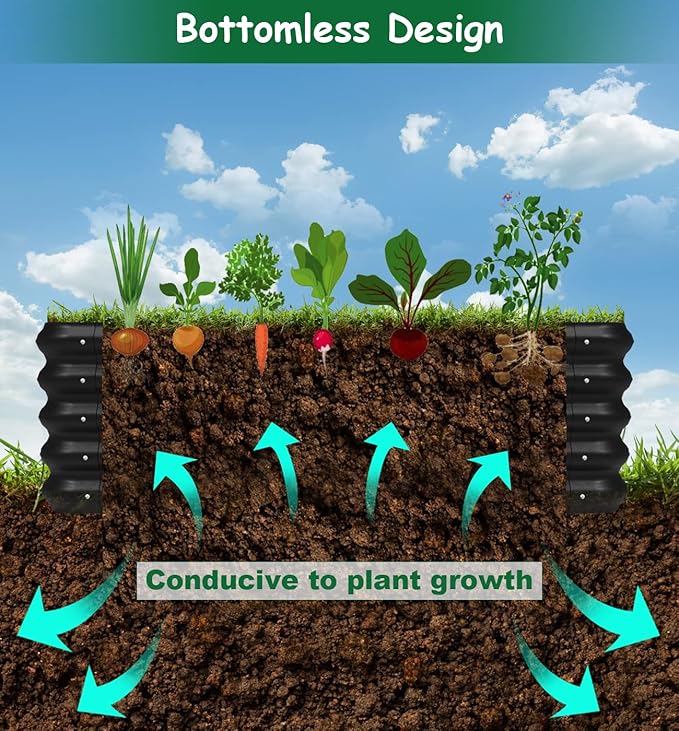 - Easier Installation& Strong Stability: Our raised garden beds outdoor feature an innovative modular design, that means just simply connecting these Straight Panels and Arc Panels, and the whole process takes only a few minutes. At the same time, we have equipped the backyard decor with suitable stable cables. They can better fix the whole garden bed, reduce the shaking, collapse, deformation.