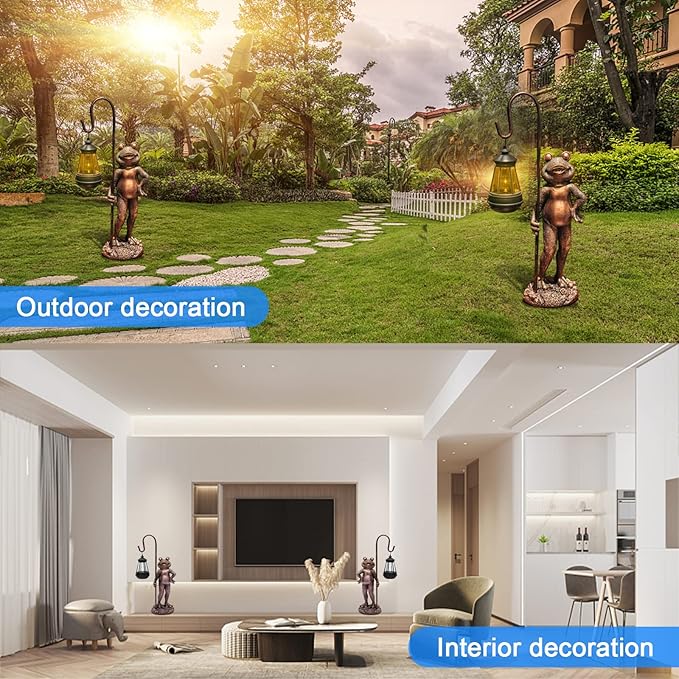 - Unique design - Unique statue is standing frog with solar lamp. Our solar Lantern Frog uses a bronze appearance, which is very much in line with the artistic beauty of the design.