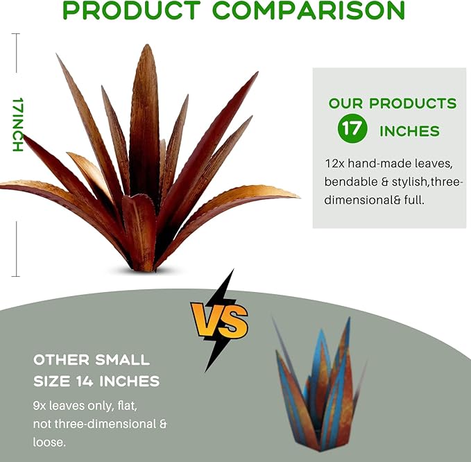 - 【Eternal metal agave】This is a rust-style metallic agave, made from metal and painted with blue high lights in contrast with its rusty steel style finish creates a very unique juxtaposition in the spring you will find a variety of beautiful and lush foliage unique to the Golden State.