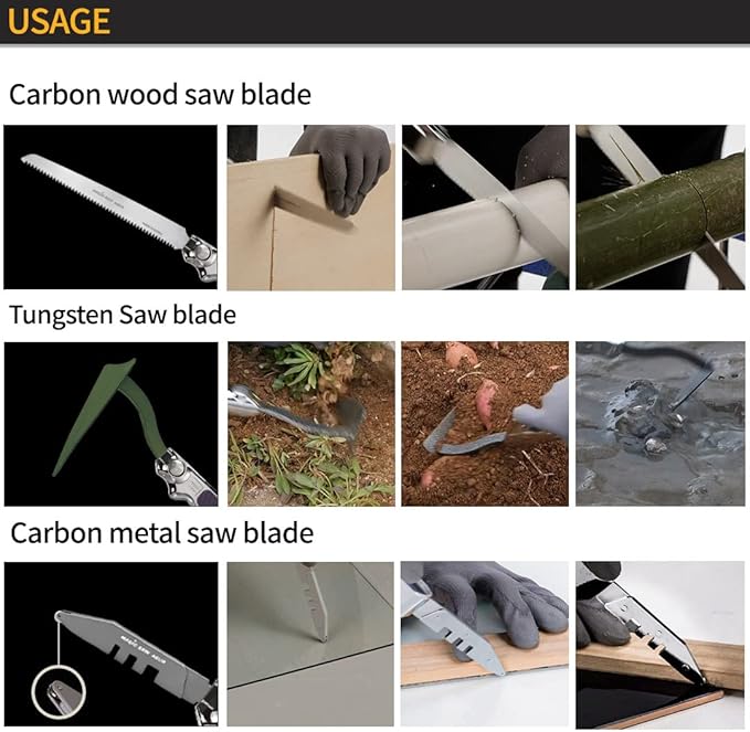 - ๐This cutting-edge tool set can cut through a wide range of materials, including wood, plastic, tile, and glass, depending on the saw blade selected. Additionally, it can also be utilized for agricultural tasks such as gardening and mowing when equipped with the optional hoe or sickle attachment.