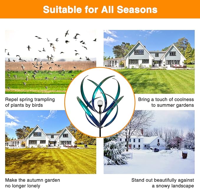 - ENHANCE GARDEN NATURAL BEAUTY: Add an attractive outdoor display by lining kinetic metal wind spinners in your garden
