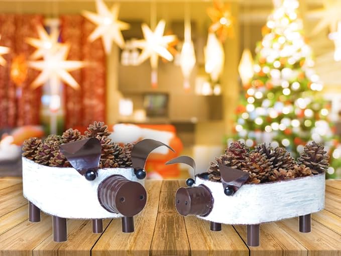 - Farmhouse Pig Bowl is great for holiday table housewarming decoration. It can place simulated fruit or seasonal decorative piece like artificial berry,pine cones for christmas decor. Shift trinket kits for other seasonal decor display while times going. Perfect for a farmhouse look on a tabletop or as a part of a shelf arrangement