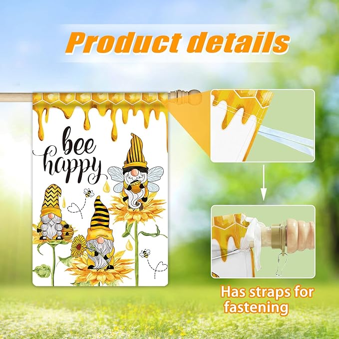 - 🎈VIVID and COLORFUL PATTERNS: The designer's elaborate pattern is double sided printed on the burlap.Including Spring,Valentine's Day,Mardi Gras,St. Patrick's Day,Easter,Bee Happy,Summer,Independence Day,Fall,Halloween,Christmas,Winter Garden Flag. Every pattern and color on the house flag has been scrutinized.