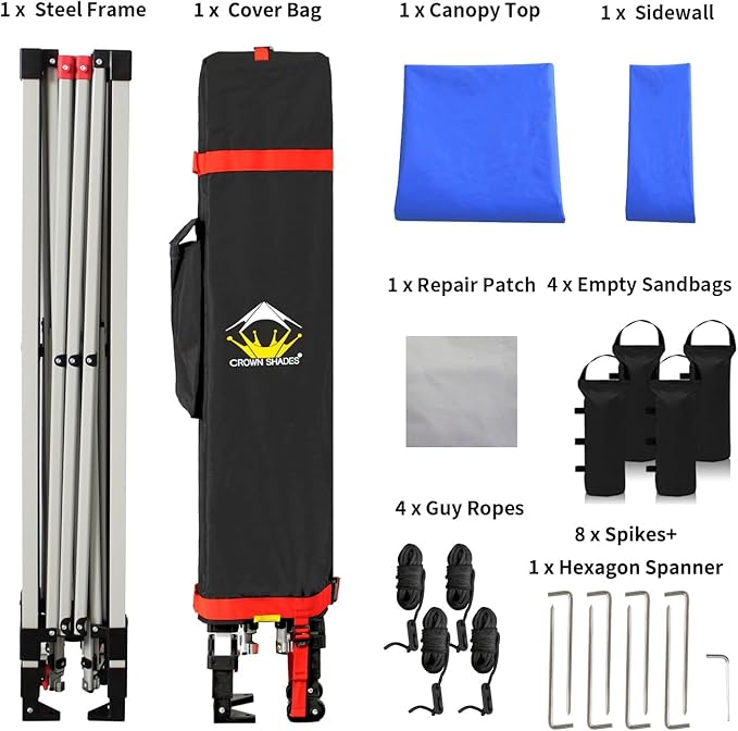 CROWN SHADES 8x8 Pop Up Canopy with 1 Side Wall - Beach Tent with One Push Setup - Outdoor Sun Shade for Events, Parties, Camping - Gazebo with STO-N-Go Cover Bag (Blue)