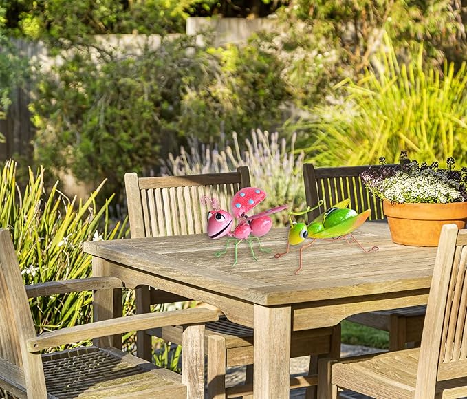 - Set of 2 colorful metal garden decor,include ladybug and mantis garden sculptures & statues decor
