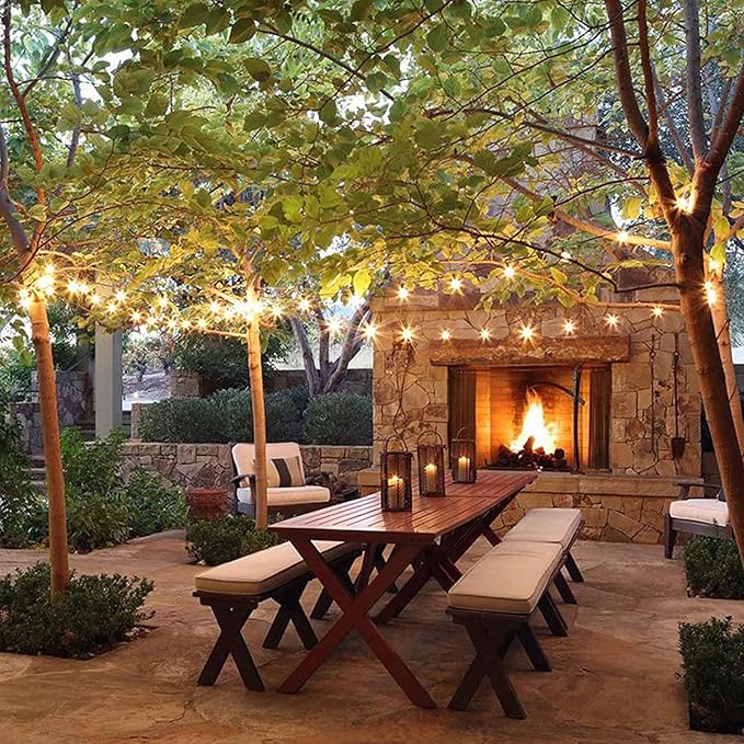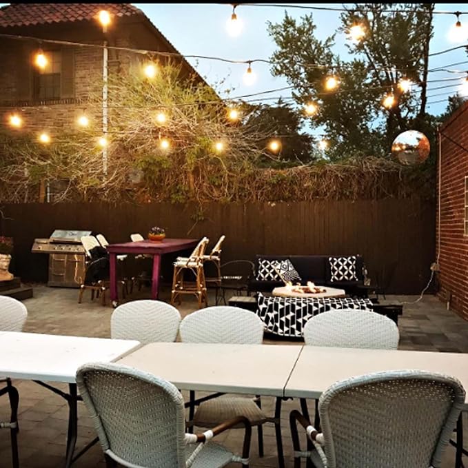 - 【Dimmable】Clear plastic bulbs provide a warm white glow. Dimmer compatible which would be perfect decoration lights for your garden, backyard and balcony
