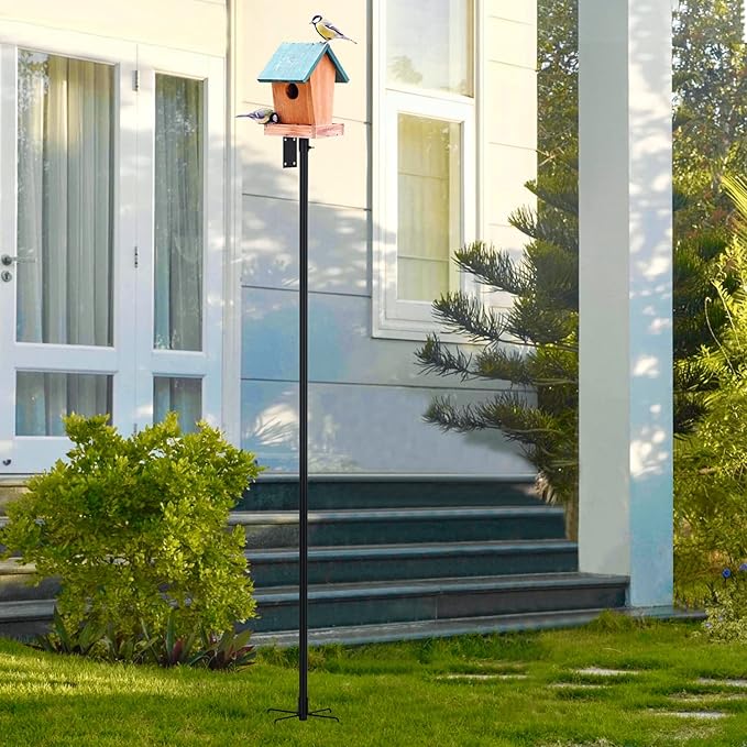 - STURDY DESIGN: Our pole kit provides solid prongs base to support bird feeders, house. Thanks to the metal powder-coated so it will not rust easily. The diameter of pole is 0.9 inch. The pole height is 96 inch. The bird house is not included in the package
