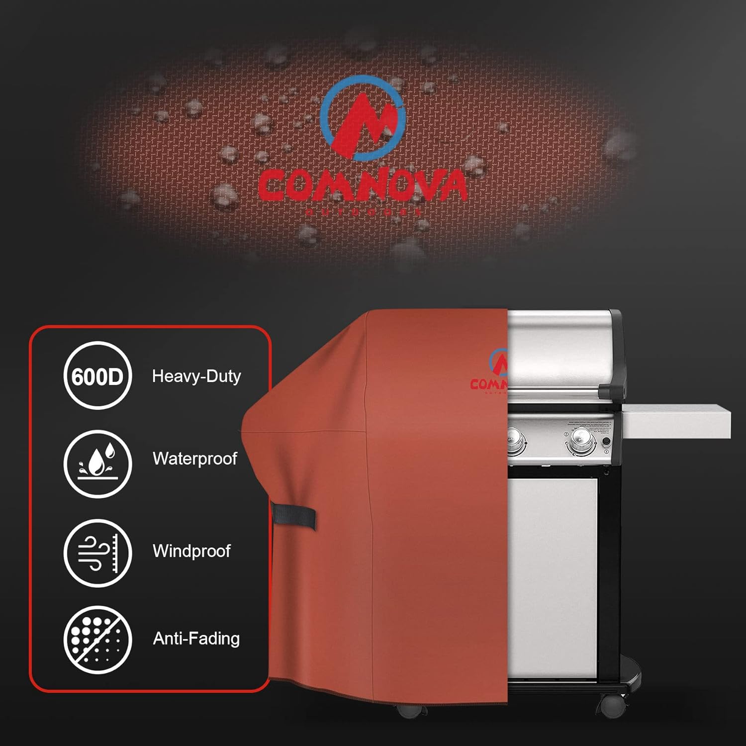 Comnova Grill Cover 58 Inch - 600D BBQ Cover for Outdoor Grill Heavy Duty and Waterproof, 58 Inch Barbecue Gas Grill Covers for Weber, Char-Broil, Nexgrill, Monument, Dyna-glo, Brinkmann and More
