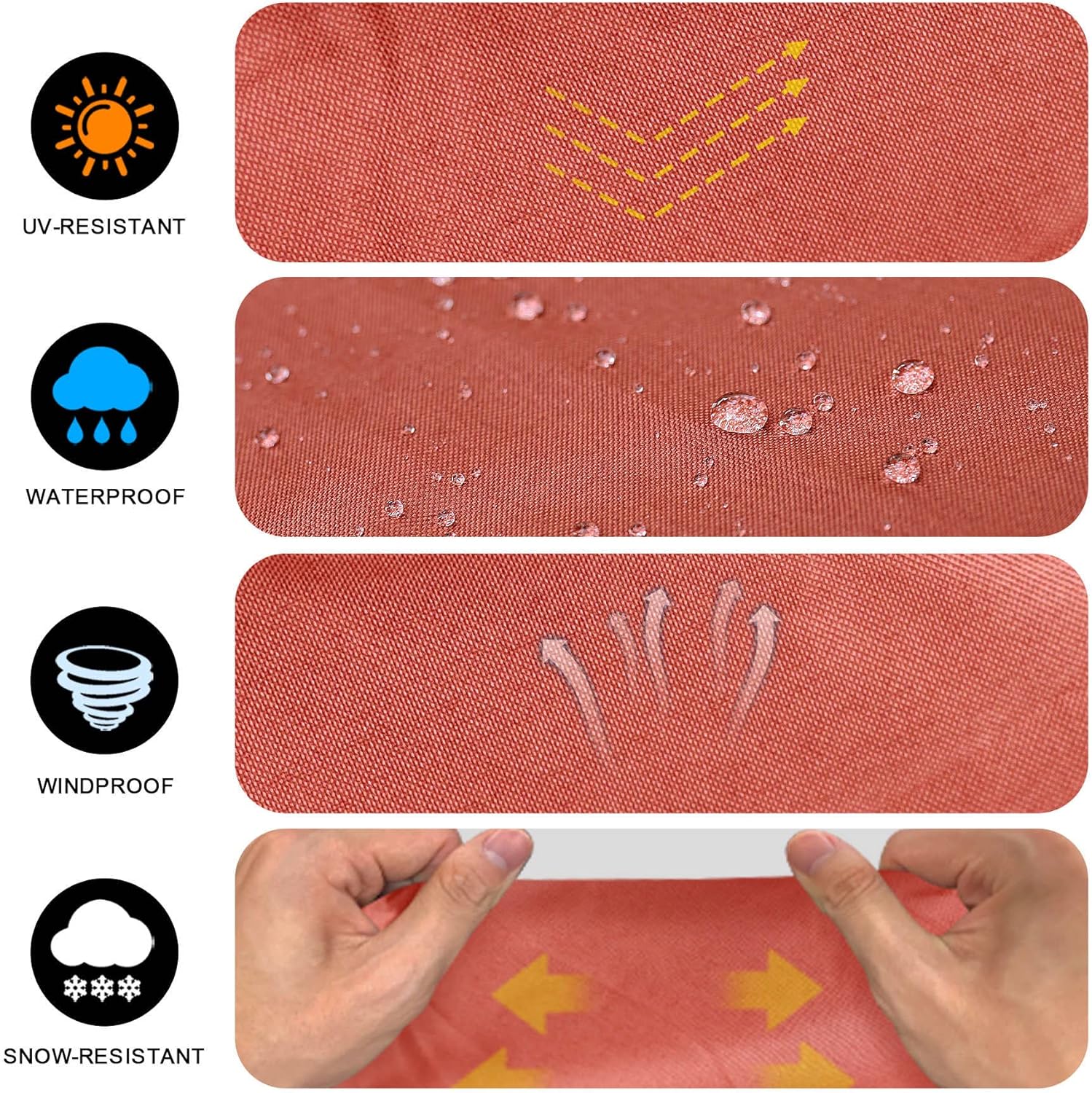 - | Heavy Duty and Waterproof Cover | - Comnova bbq gas grill covers are made of 600D heavy-duty oxford cloth with waterproof PU coating And UV-resistant coating. Compared with PVC, our bbq covers are softer and more breathable. Our barbecue grill covers can protect your bbq grill from heavy rain, snow, straight sunshine, tear and fading. More importantly, PU coating is more environmentally friendly!