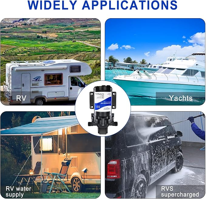 12 volt RV Water Pump Water Pressure Booster Pump for Garden Hose Self Priming Water Pump 50psi 4gpm On Demand Water Pump for Kitchen Bathroom, Garden, Marine, Boats and Irrgration