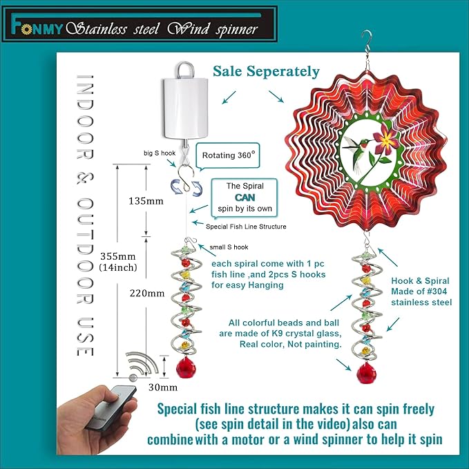 - 【PREMIUM CRYSTAL SUNCATCHER】The spiral with crystal is a special sun catcher rainbow maker, it’s Super Sparkly under sunshine. You can also add a motor(not include) to let the spiral to spin ,while spiral tail rotating (it can’t spin by itself.), the crystal ball seems to move up and down like floating and dancing in air, presents the magical visual illusion.
