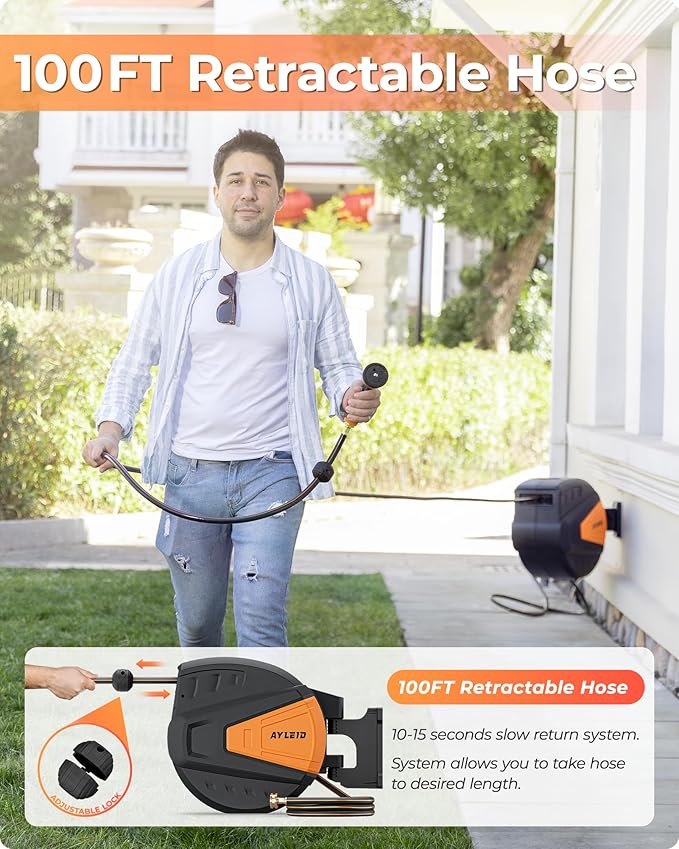 - 【Free Lock】When you pull the hose to the length you need, it will automatically lock the position to stop the hose from retracting, and there is no extra length to bring kinks and tangles, so it is more convenient to use water.