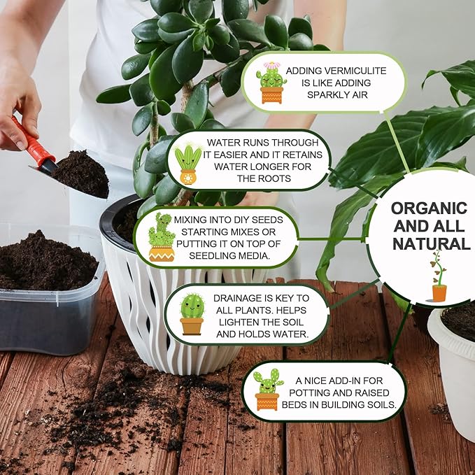 - Say Goodbye to Slow Plant Growth: You can try using vermiculite to make a soilless mixture. Garden vermiculite is good for mixing into soils for house plants to help the soil not dry out as it holds onto moisture. Another way to use this is mixing into DIY plants starting mixes or putting it on top of seedling media. It is very lightweight so the seedlings won't have a problem poking through it. It lightens the soil for better root growth. Helps growth in new beginning plants