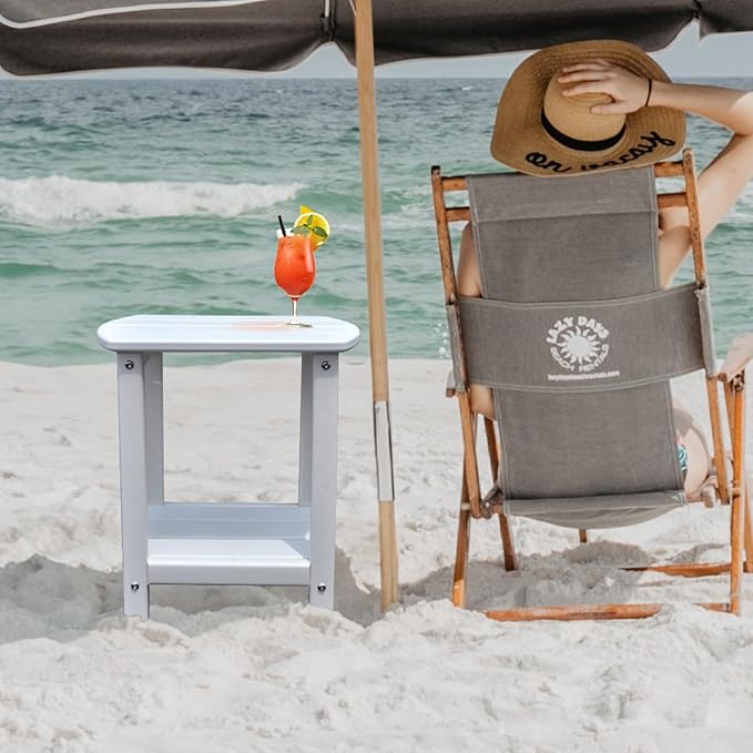 Adirondack Square Outdoor Side Table,2-Tier Storage Patio Side Table, HDPE End Tables for Backyard Pool Porch Garden Lawn(White)